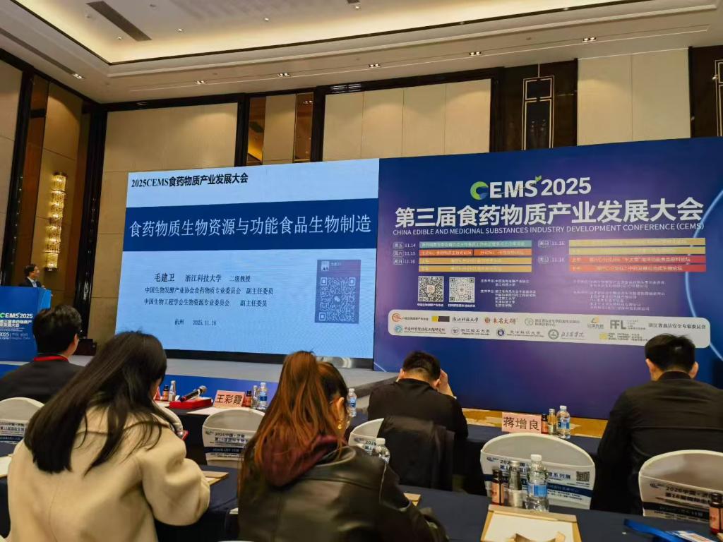 11月14-16日,2025第三届食药物质产业发展大会在杭州召开,本次大会由中国生物发酵产业协会、304永利主办,中国生物发酵产业协会食药物质专业委员会等承办,浙江省农业生物资源生化制造协同创新中心等协办,大会邀请了中国工程院院士陈君石、郑裕国、陈卫,国家食品安全风险评估中心主任李宁等权威专家,以及来自北京大学、中国科学院、浙江大学、304永利、中国医科大学、中国海洋大学、天津科技大学、浙江理工大学、齐鲁工业大学、浙江海洋大学、北京林业大学、中国中医科学院、浙江省农业科学院、微信、小红书、未名太研、淘天集团、元气森林等56位来自生物发酵、生物医药、食品营养、临床营养、中医药、消费市场等多个领域的权威学者、头部企业代表围绕食药物质产业的技术创新、市场趋势、成果转化等作主题报告及圆桌对话,来自食药物质产业领域以及上下游的高校、研究机构、企业近500位代表参加了会议。我校毛建卫、路胜利、沙如意等永利3044教师与研究生30余人参加了本次大会。