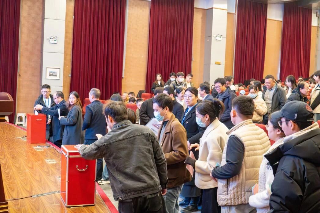 大会书面审议通过学院纪委工作报告及党费收缴使用管理情况报告,表决通过选举办法、监计票人名单及 “两委” 委员候选人名单。随后,全体党员以无记名投票、差额选举方式,选出新一届党委委员与纪委委员,现场公布结果后,全场掌声祝贺。