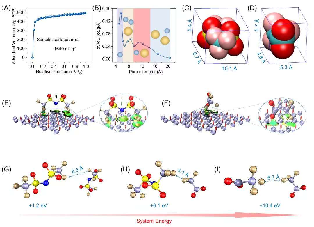 针对上述问题,本研究创新性地提出了异尺寸离子协同策略:通过精准匹配大小阴离子,使其在分级碳孔结构的微孔区域内形成动态适配,借助致密离子填充有效压缩自由体积。这种限域环境显著抑制了离子自由度,从而强化了电极界面的吸附稳定性。所构建的异尺寸离子-孔结构匹配体系,不仅实现了能量密度的显著提升与自放电动力学的有效抑制,更在宽温范围(-20℃至80℃)内展现出优异的电容保持性能,为极端温度条件下实现高稳定储能开辟了新的电解质设计路径。理论模拟与系统电化学测试共同证实,该策略能够有效适配商业活性炭电极孔结构,在提升能量密度与系统稳定性方面具有重要应用前景。